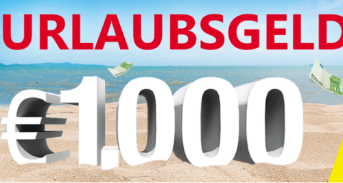 Wir zahlen ihnen 1.000 Euro Urlaubsgeld!!! Damit können sie im Urlaub einiges machen!